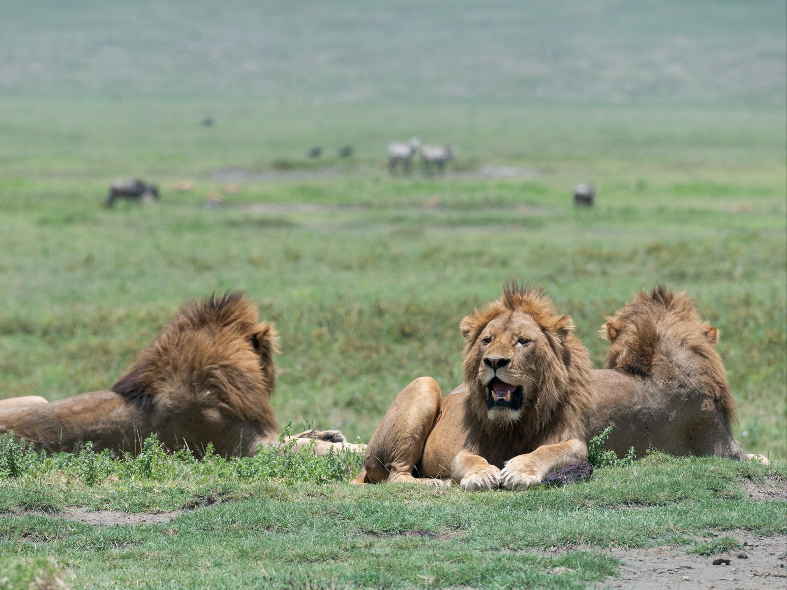 Download 1600x1200 lions, lion, predators, mouth, grass wallpaper, background standard 4:3