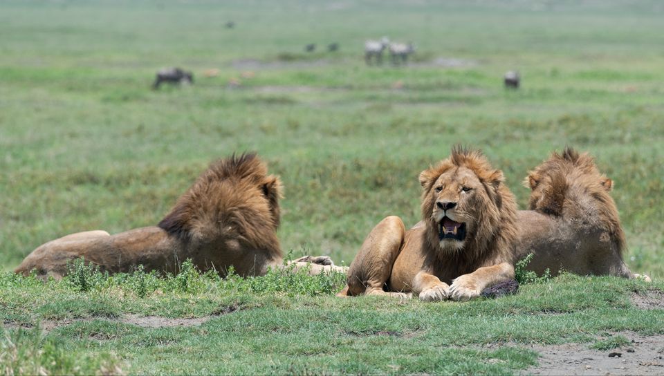 Download 960x544 lions, lion, predators, mouth, grass wallpaper, background playstation ps vita