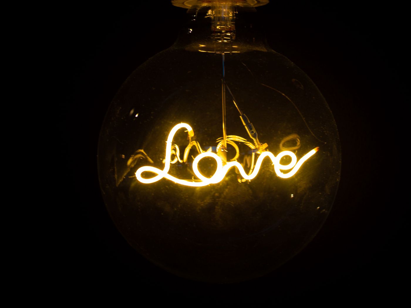 Download 1400x1050 love, neon, lamp, inscription, word wallpaper, background standard 4:3