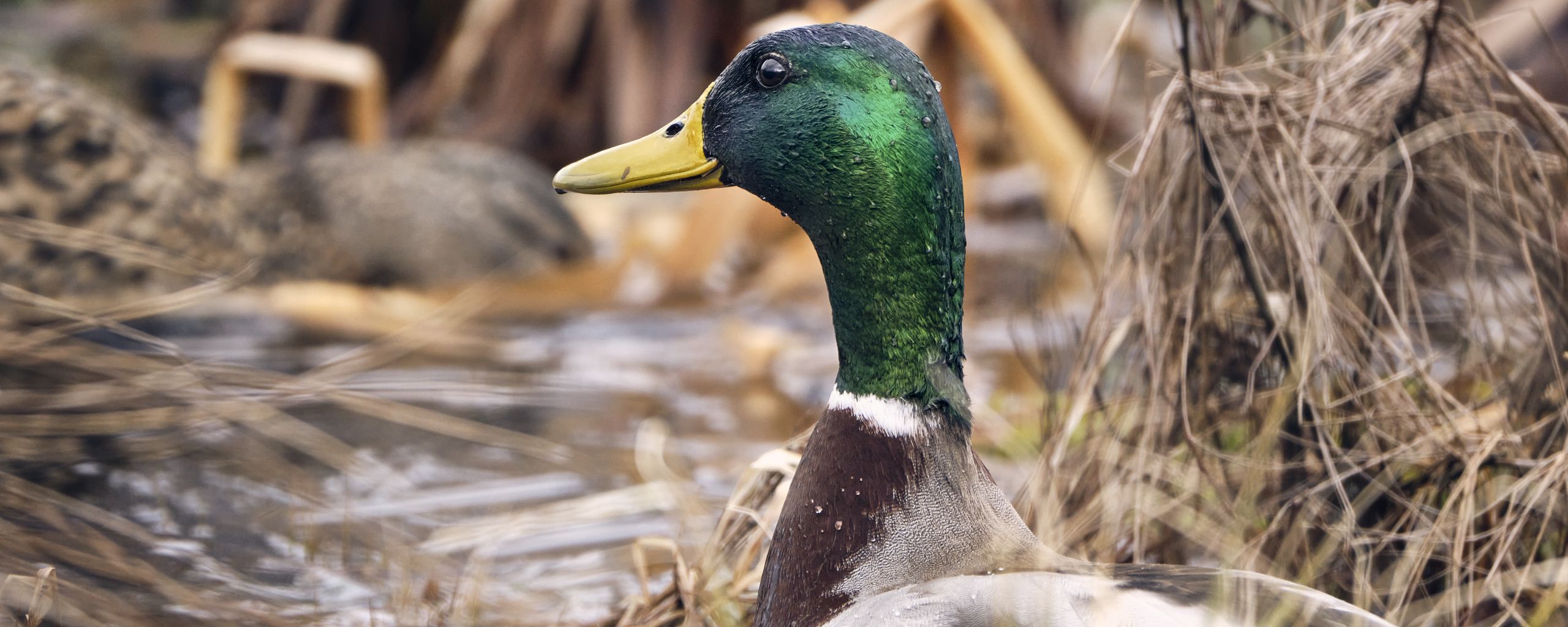 Download 2560x1024 mallard, duck, bird, blur wallpaper, background ultrawide monitor