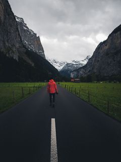 Download 240x320 man, road, mountains, clouds wallpaper, background old mobile, cell phone, smartphone