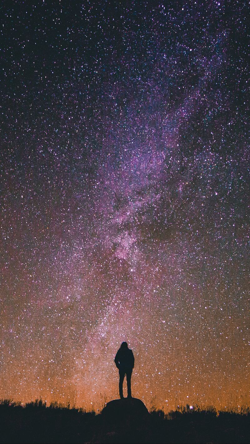Download 800x1420 man, silhouette, milky way, starry sky, loneliness, night wallpaper, background iphone se/5s/5c/5 for parallax