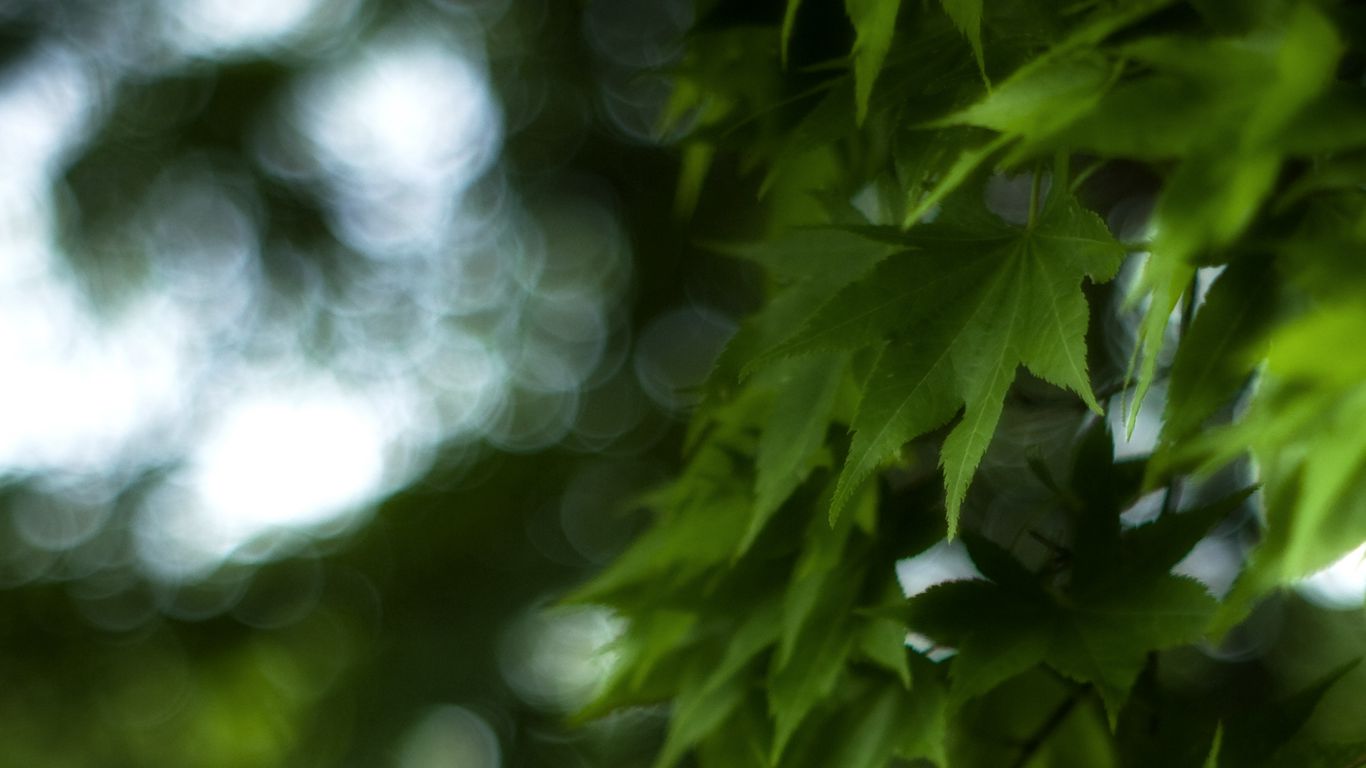 Download 1366x768 maple, leaves, branch, maple leaves, blur, green wallpaper, background tablet, laptop