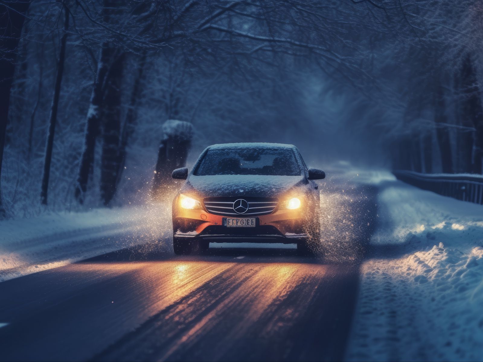 Download 1600x1200 mercedes, car, machine, road, winter, snow wallpaper, background standard 4:3