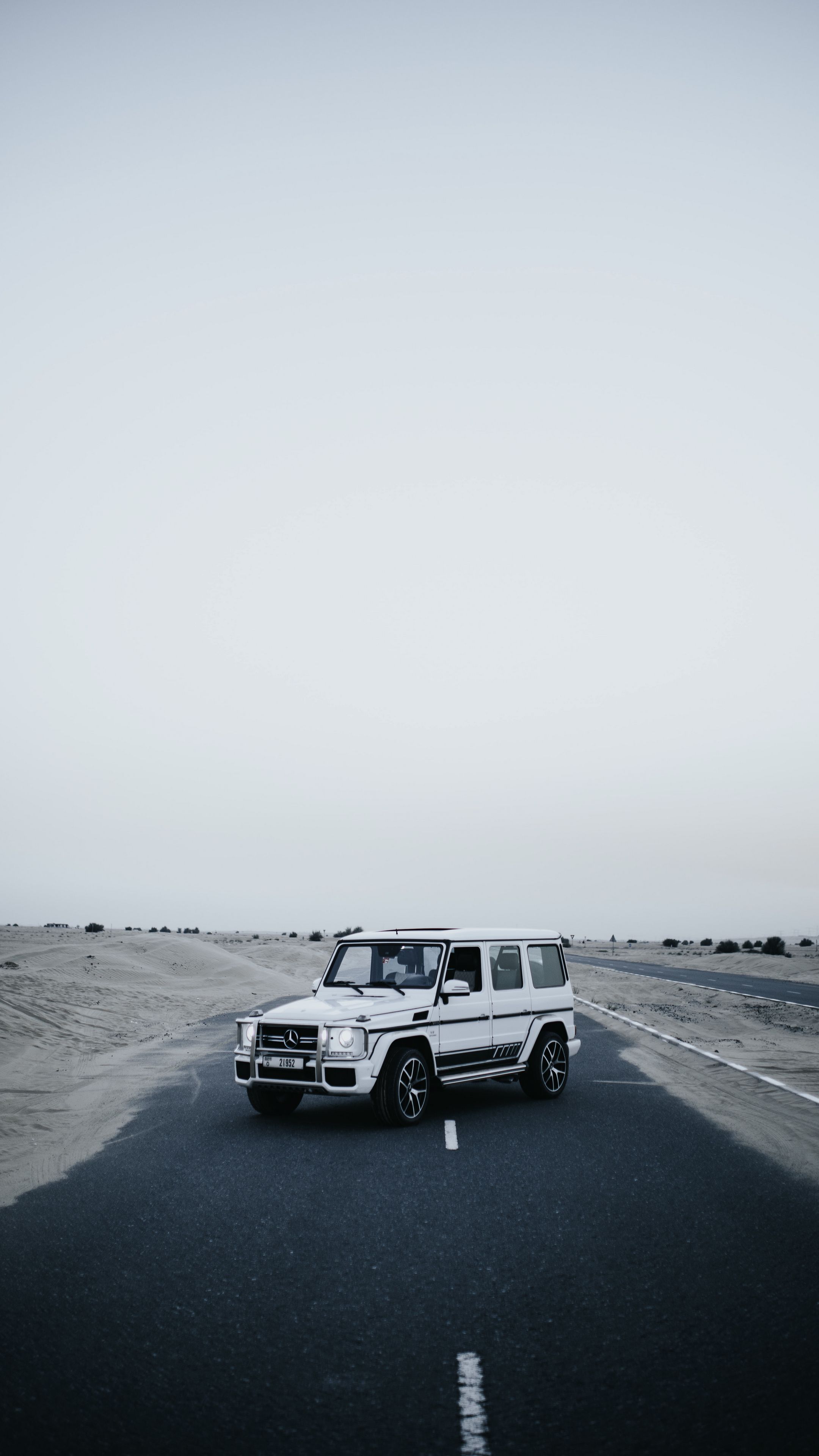 Download 2160x3840 mercedes, car, suv, white, road, desert wallpaper, background samsung galaxy s4, s5, note, sony xperia z, z1, z2, z3, htc one, lenovo vibe