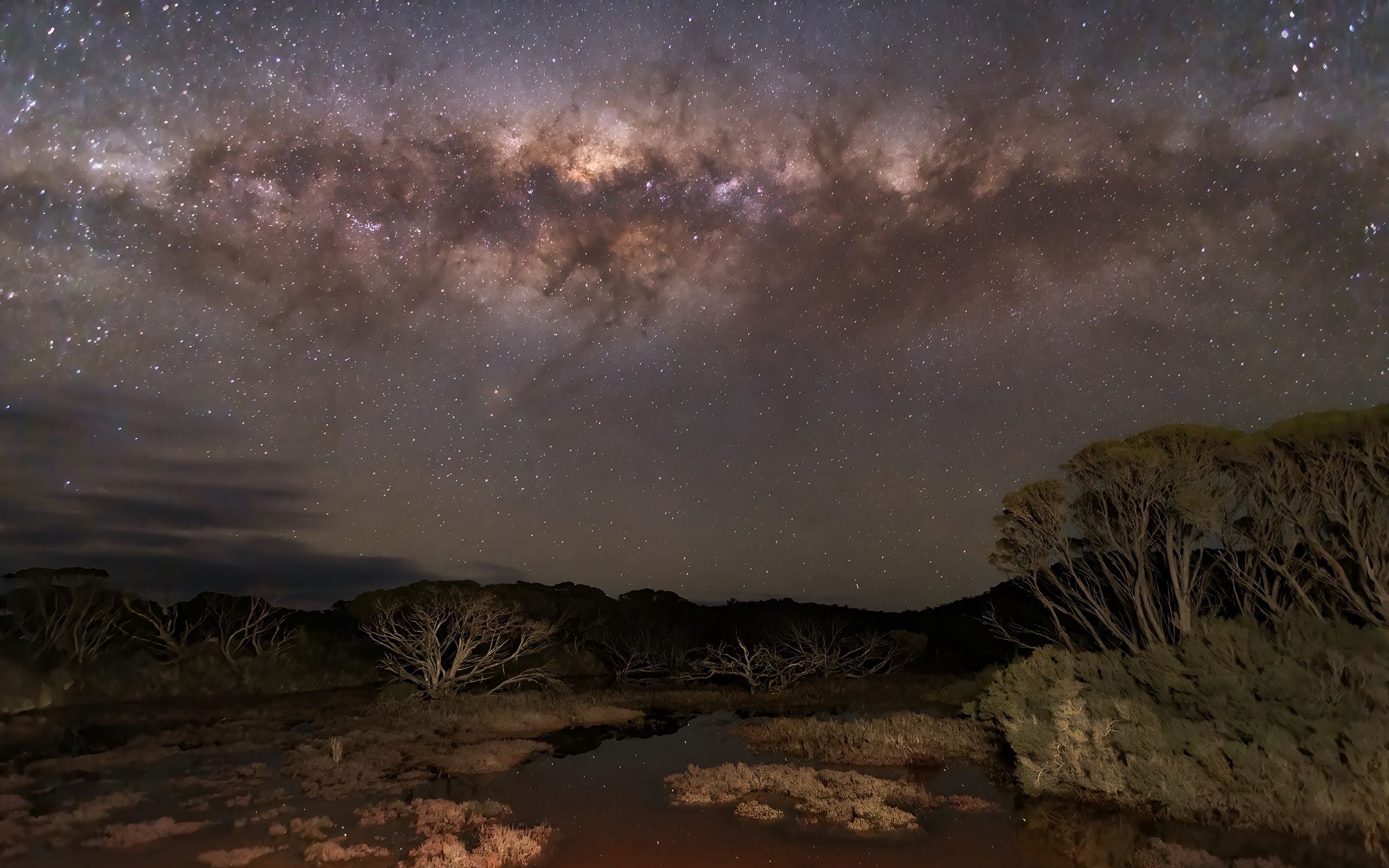 Download 2560x1600 milky way, stars, sky, space, trees, dark, landscape wallpaper, background widescreen 16:10
