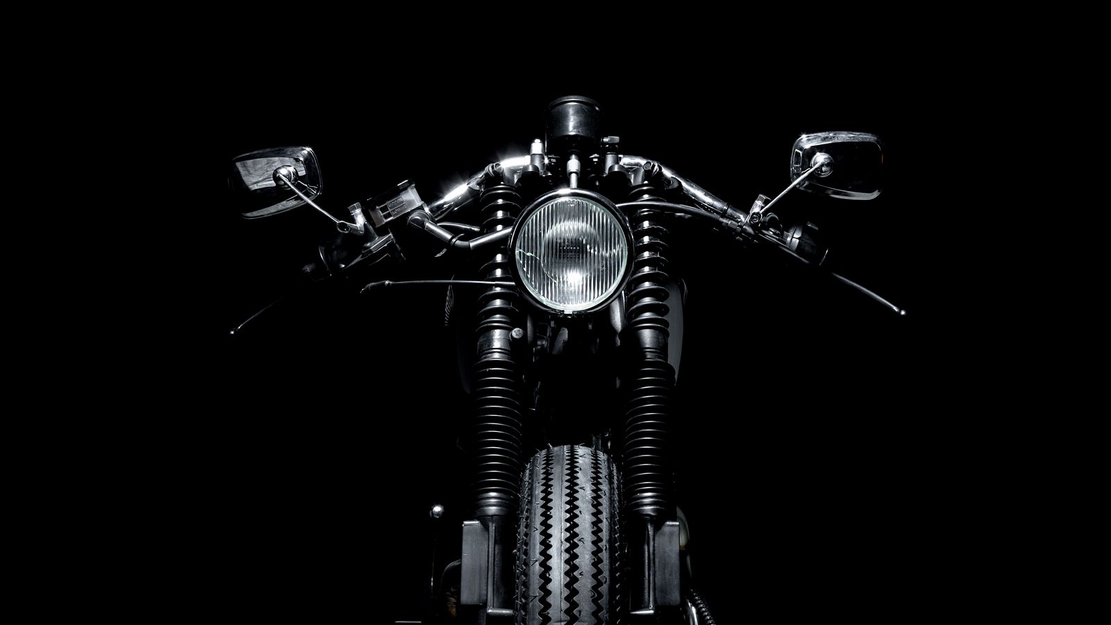 Download 1600x900 motorcycle, headlight, tire, bw wallpaper, background widescreen 16:9