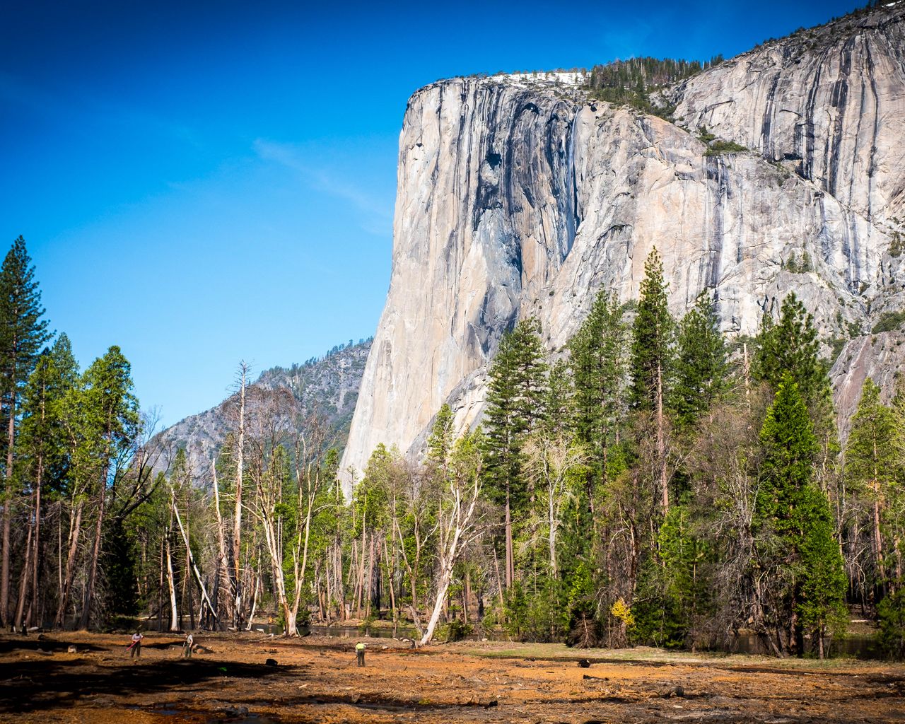 Download 1280x1024 mountain, field, trees, nature, sun wallpaper, background standard 5:4