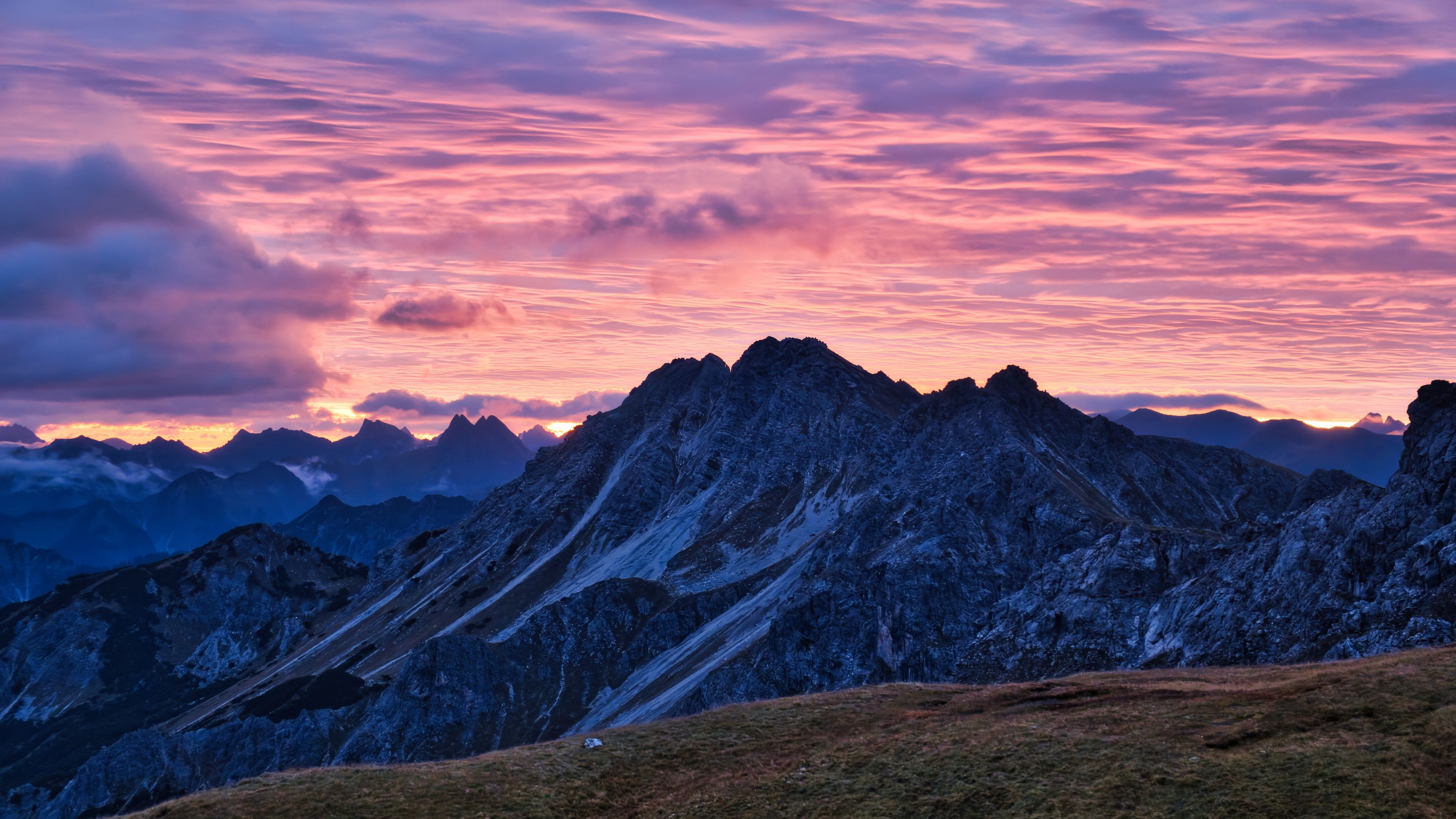 Download 3840x2160 mountains, clouds, sunset, sky, nature wallpaper, background 4k uhd 16:9