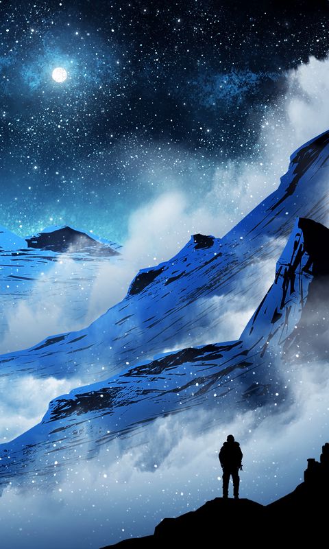 Download 480x800 mountains, night, silhouette, moon, moonlight wallpaper, background nokia x, x2, xl, 520, 620, 820, samsung galaxy star, ace, asus zenfone 4