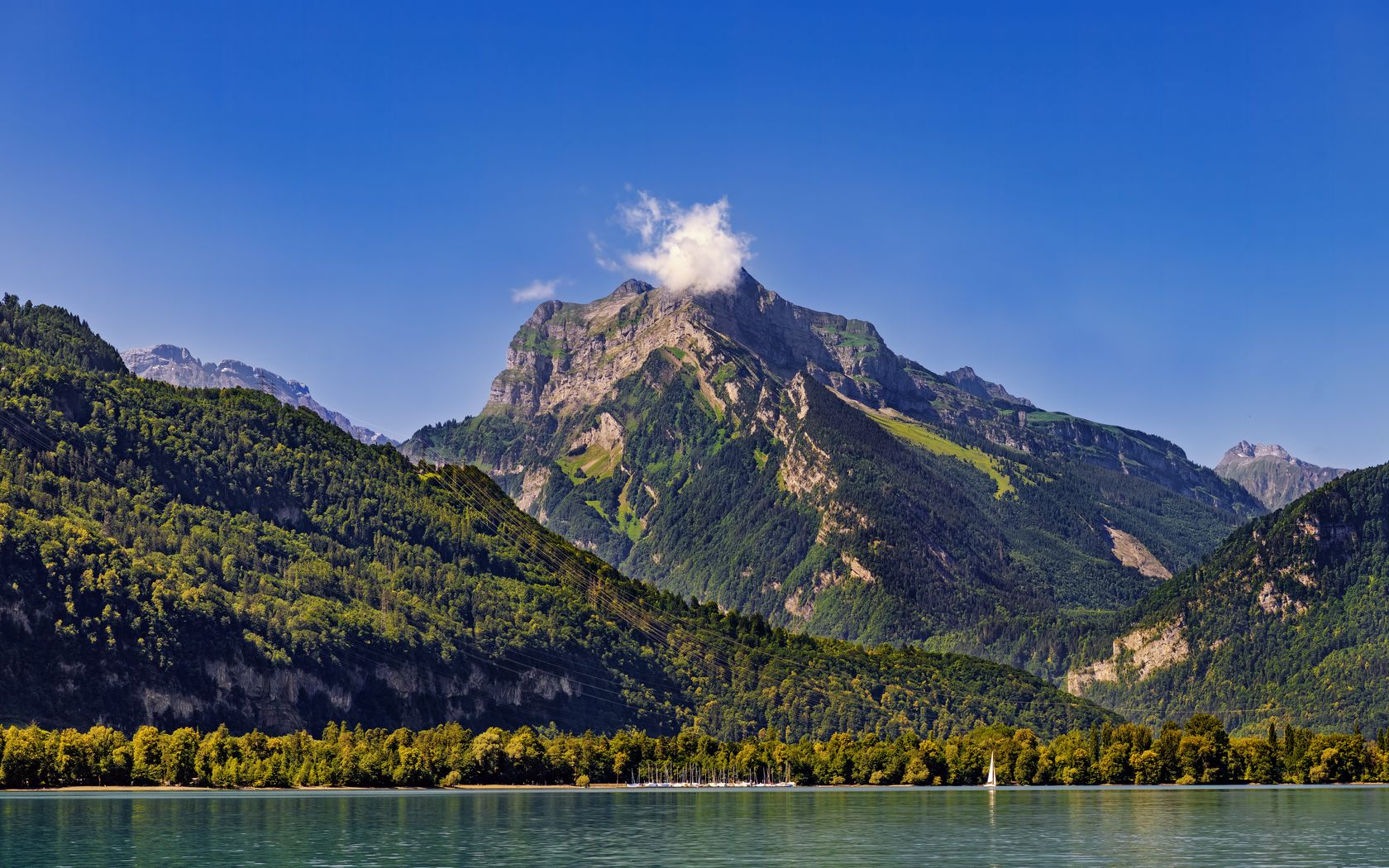 Download 1680x1050 mountains, trees, forest, lake, sky, landscape wallpaper, background widescreen 16:10