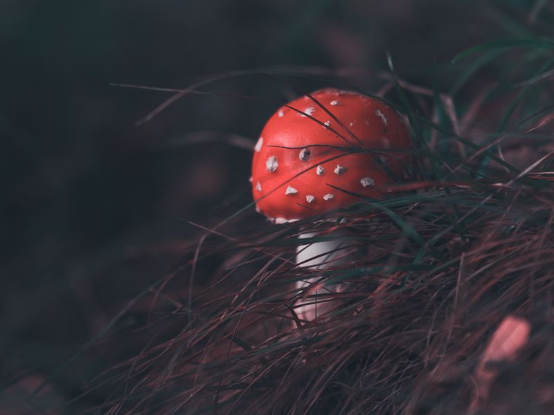 Download 800x600 mushroom, fly agaric, grass, blur wallpaper, background pocket pc, pda