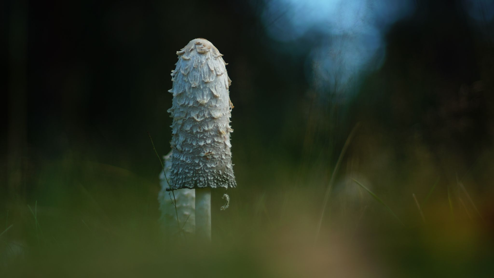 Download 2048x1152 mushroom, grass, highlights, blur, macro, nature wallpaper, background ultrawide monitor
