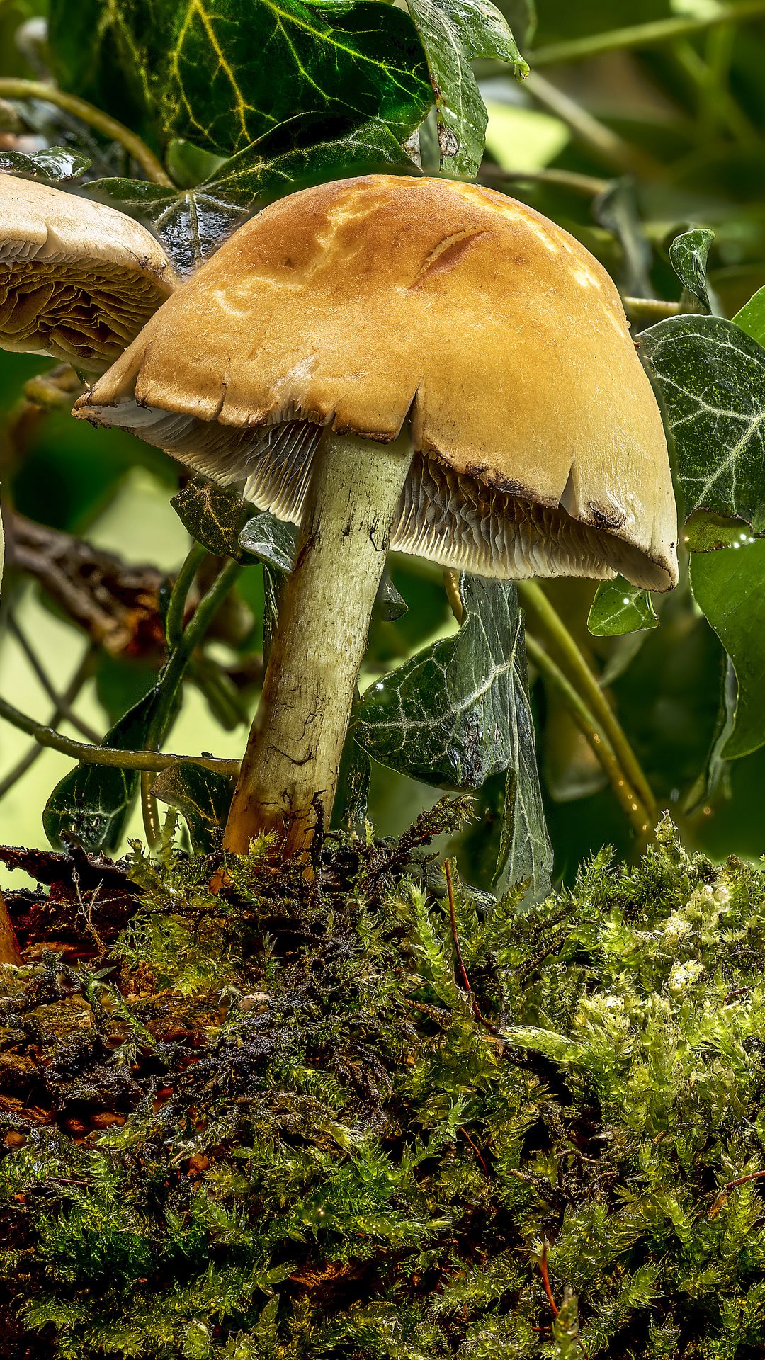 Download 1080x1920 mushroom, moss, leaves, macro wallpaper, background samsung galaxy s4, s5, note, sony xperia z, z1, z2, z3, htc one, lenovo vibe