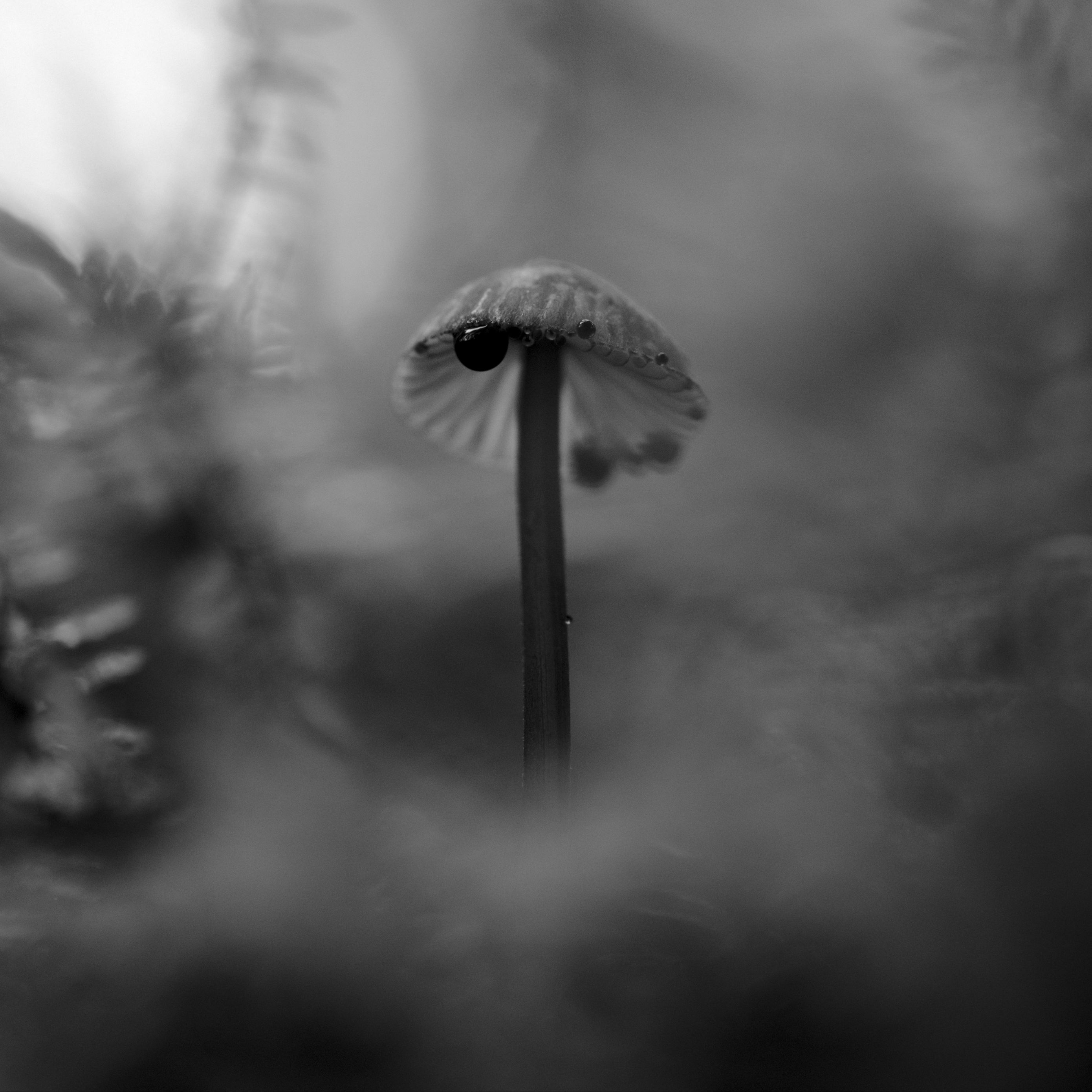 Download 2780x2780 mushroom, plants, fog, macro, blur, bw, dark wallpaper, background ipad air, ipad air 2, ipad 3, ipad 4, ipad mini 2, ipad mini 3, ipad mini 4, ipad pro 9.7" for parallax