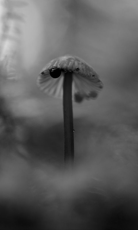 Download 480x800 mushroom, plants, fog, macro, blur, bw, dark wallpaper, background nokia x, x2, xl, 520, 620, 820, samsung galaxy star, ace, asus zenfone 4