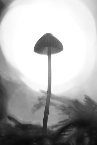 Download 320x480 mycena, mushroom, black and white, macro, blur wallpaper, background samsung galaxy ace gt-s5830, sony xperia e, miro, htc wildfire s, c, lg optimus