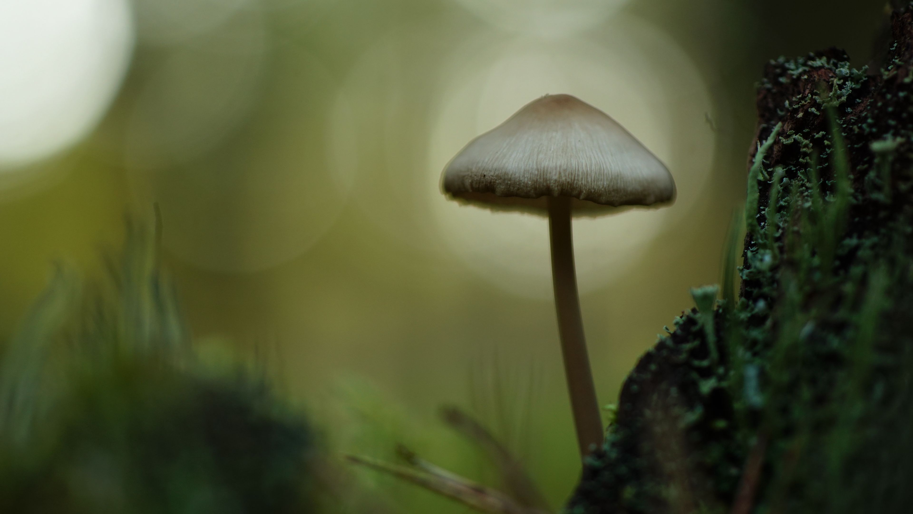 Download 3840x2160 mycena, mushroom, nature, macro, moss, grass, blur wallpaper, background 4k uhd 16:9