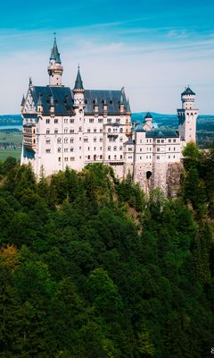 Download 240x400 neuschwanstein, castle, trees, forest, architecture wallpaper, background nokia asha 311, samsung galaxy 580, omnia, lg kp500