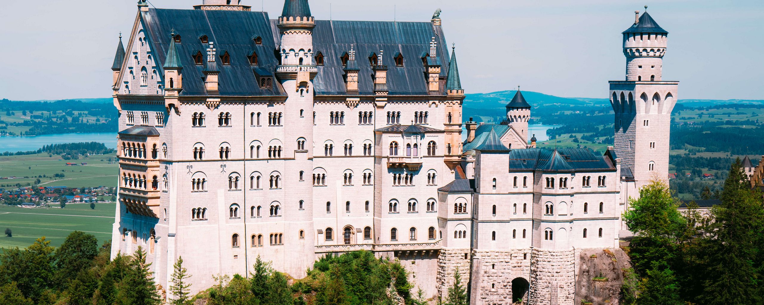 Download 2560x1024 neuschwanstein, castle, trees, forest, architecture wallpaper, background ultrawide monitor