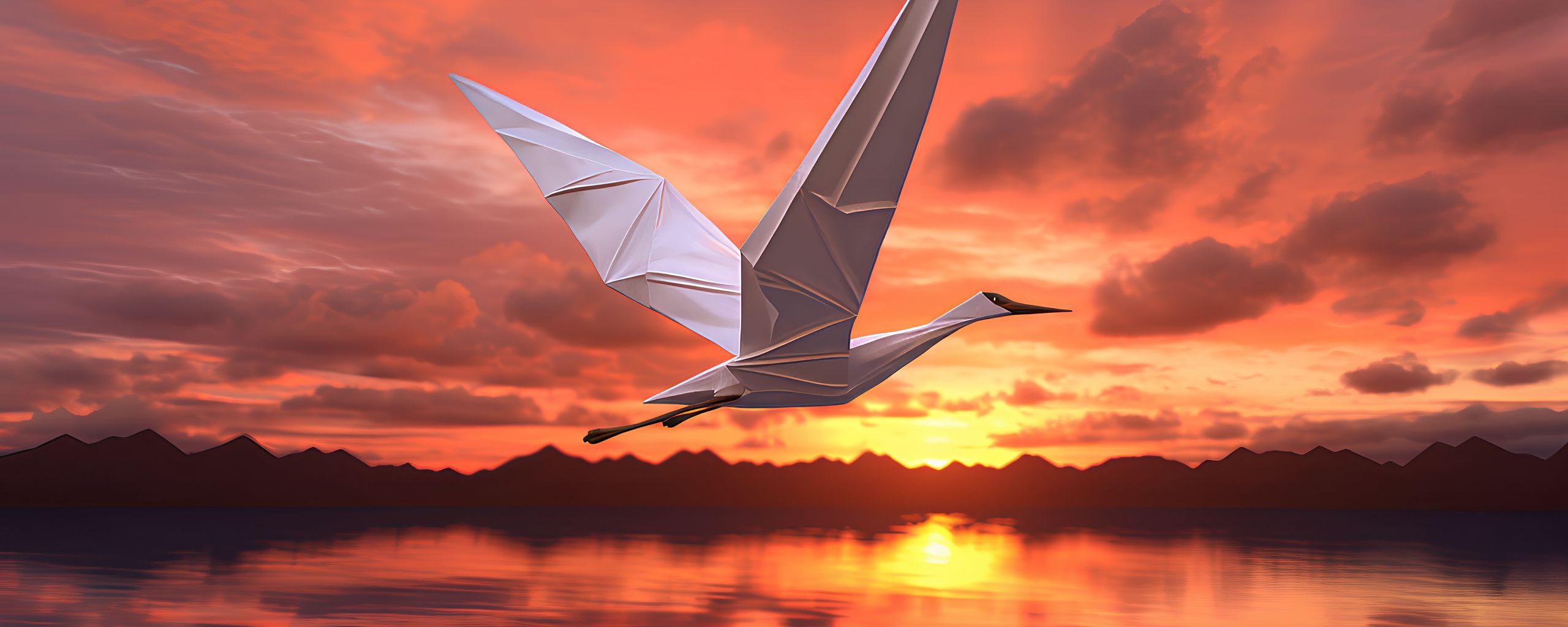 Download 2560x1024 origami, bird, sea, sunset wallpaper, background ultrawide monitor