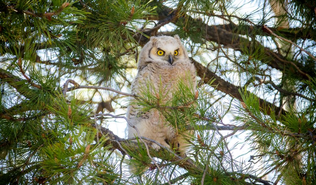 Download 1024x600 owl, bird, watching, branches, fluffy wallpaper, background netbook, tablet
