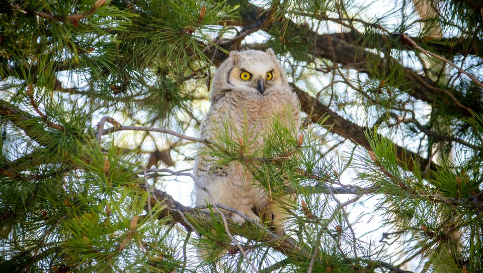 Download 960x544 owl, bird, watching, branches, fluffy wallpaper, background playstation ps vita