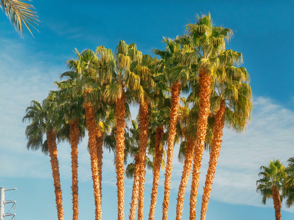 Download 1024x768 palm trees, tropics, city wallpaper, background standard 4:3
