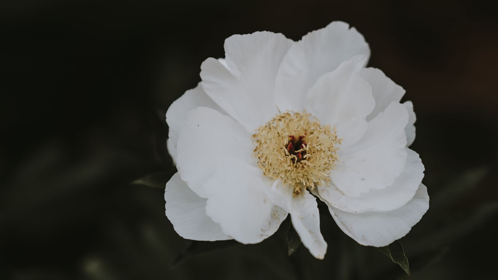 Download 1600x900 peony, flower, white, close-up, motion blur wallpaper, background widescreen 16:9