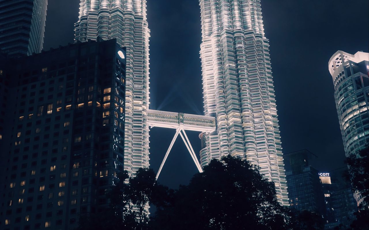 Download 1280x800 petronas towers, kuala lumpur, malaysia, illumination wallpaper, background widescreen 16:10