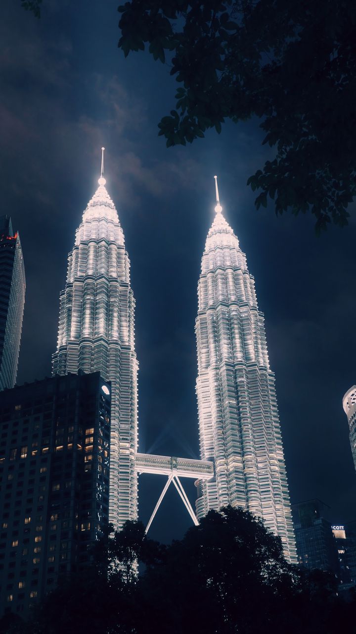 Download 720x1280 petronas towers, kuala lumpur, malaysia, illumination wallpaper, background samsung galaxy mini s3, s5, neo, alpha, sony xperia compact z1, z2, z3, asus zenfone