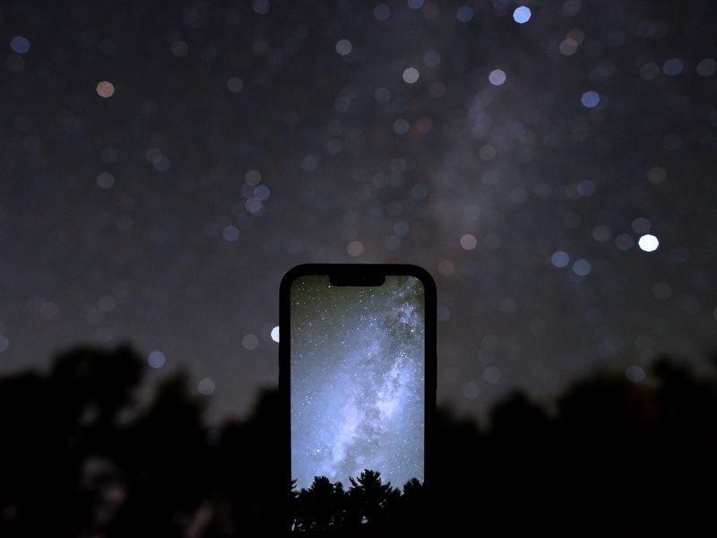 Download 800x600 phone, iphone, screen, milky way, trees, night wallpaper, background pocket pc, pda