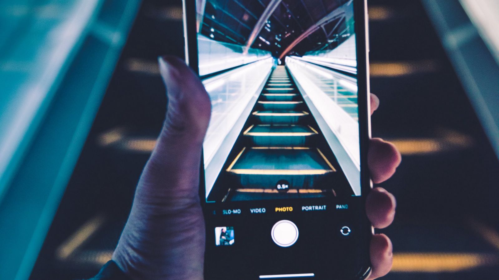 Download 1600x900 phone, smartphone, hand, escalator, photo wallpaper, background widescreen 16:9