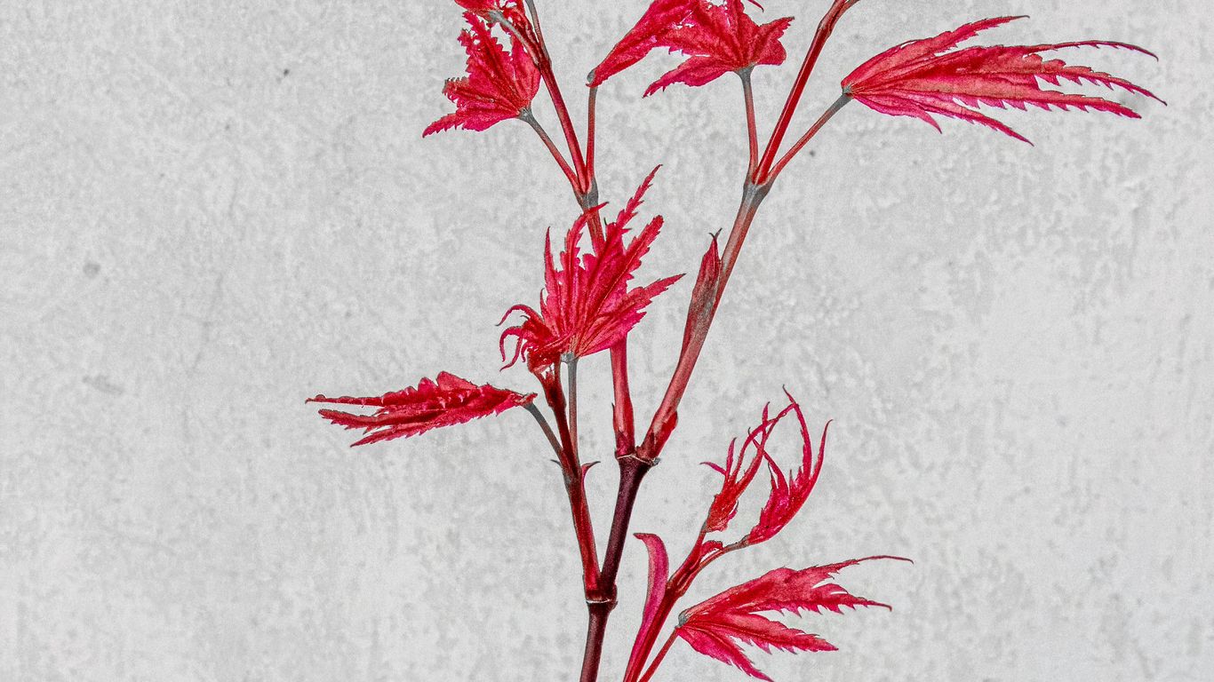 Download 1366x768 plant, branch, leaves, red, white background wallpaper, background tablet, laptop