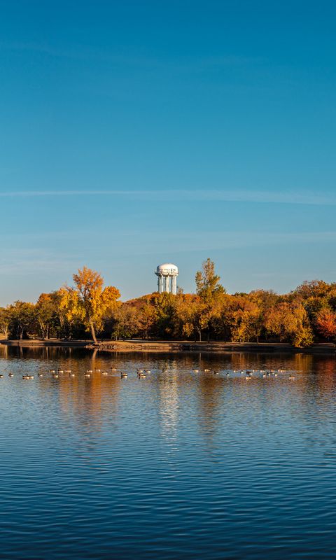Download 480x800 pond, trees, tower, sky wallpaper, background nokia x, x2, xl, 520, 620, 820, samsung galaxy star, ace, asus zenfone 4