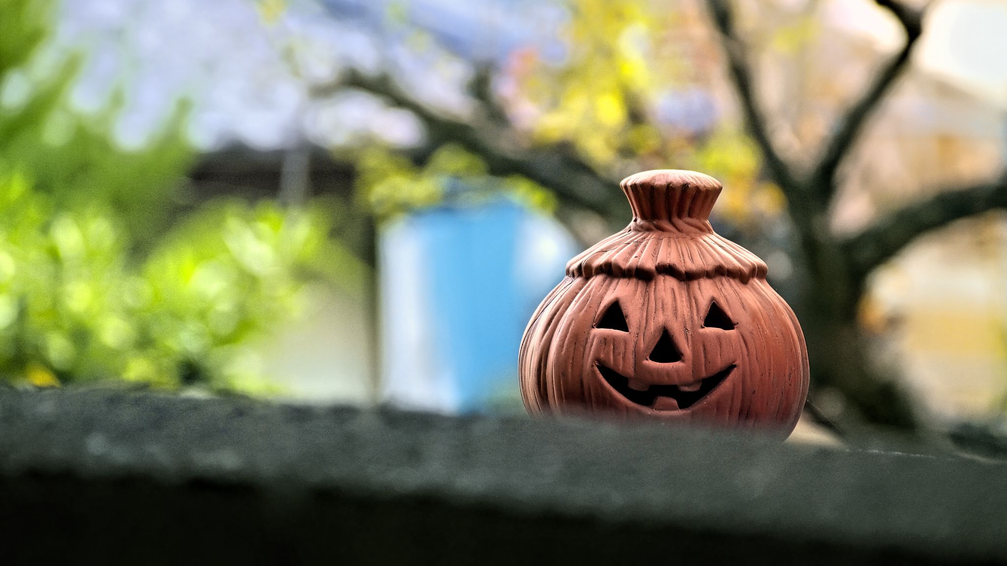 Download 2048x1152 pumpkin, halloween, copper, blur wallpaper, background ultrawide monitor