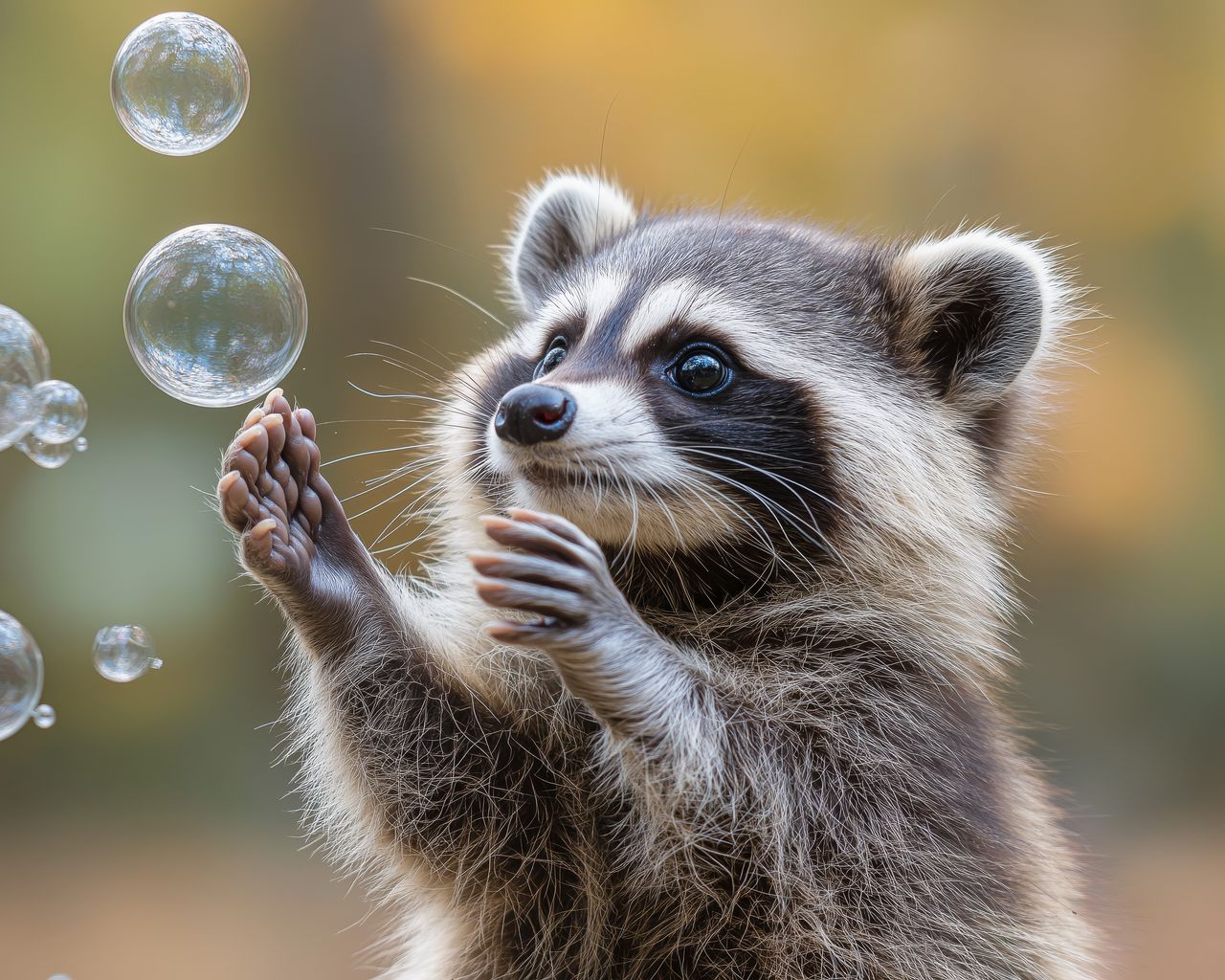 Download 1280x1024 raccoon, animal, bubbles, cute wallpaper, background standard 5:4