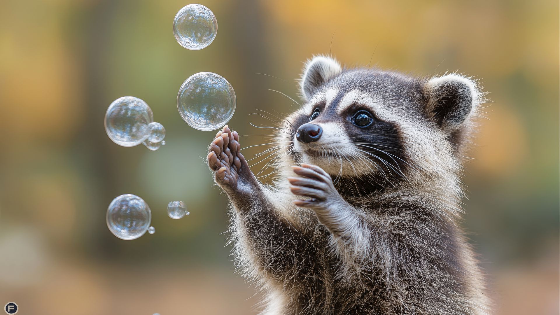 Download 1920x1080 raccoon, animal, bubbles, cute wallpaper, background full hd, hdtv, fhd, 1080p