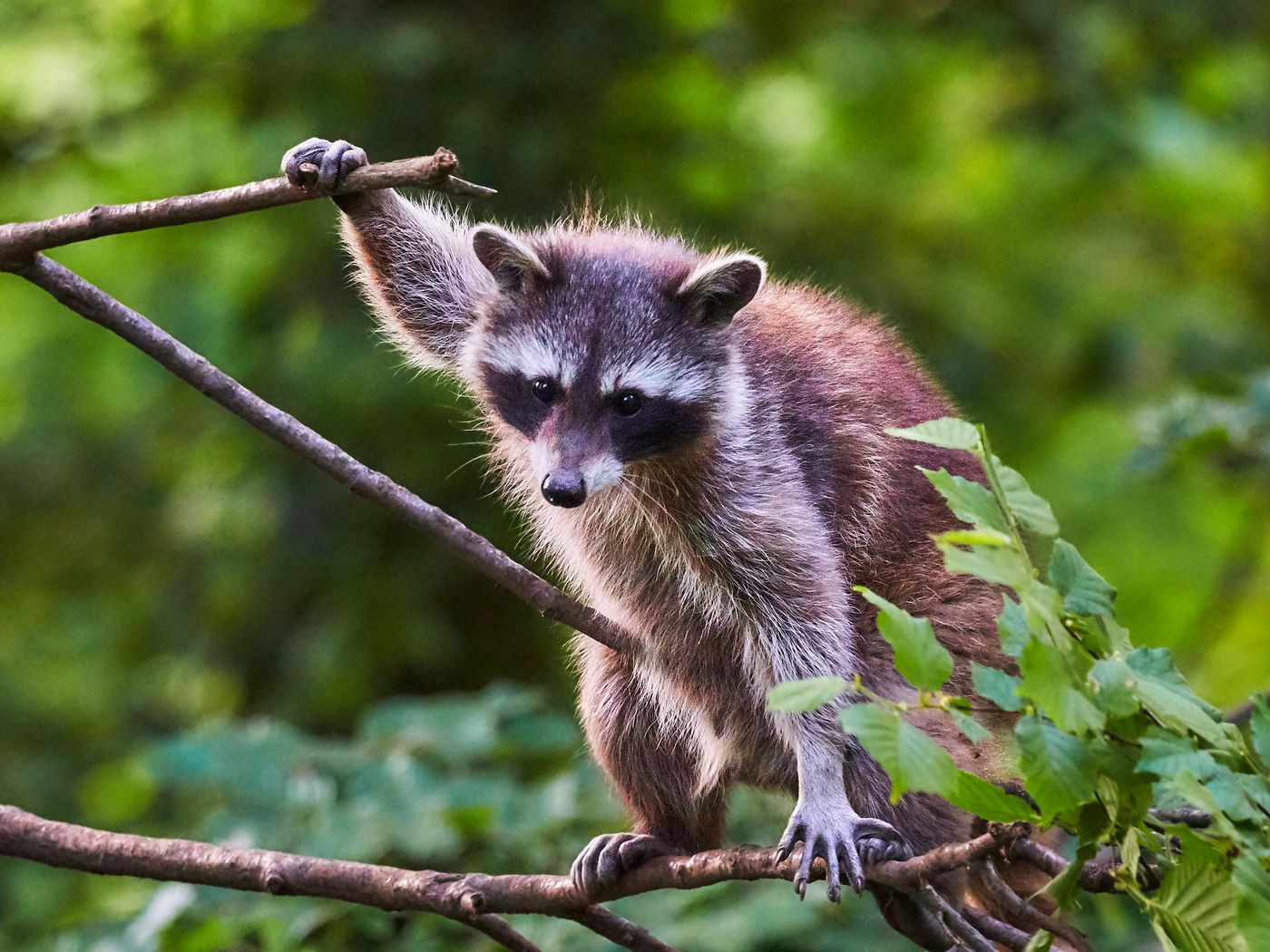 Download 1400x1050 raccoon, animal, tree, branches wallpaper, background standard 4:3