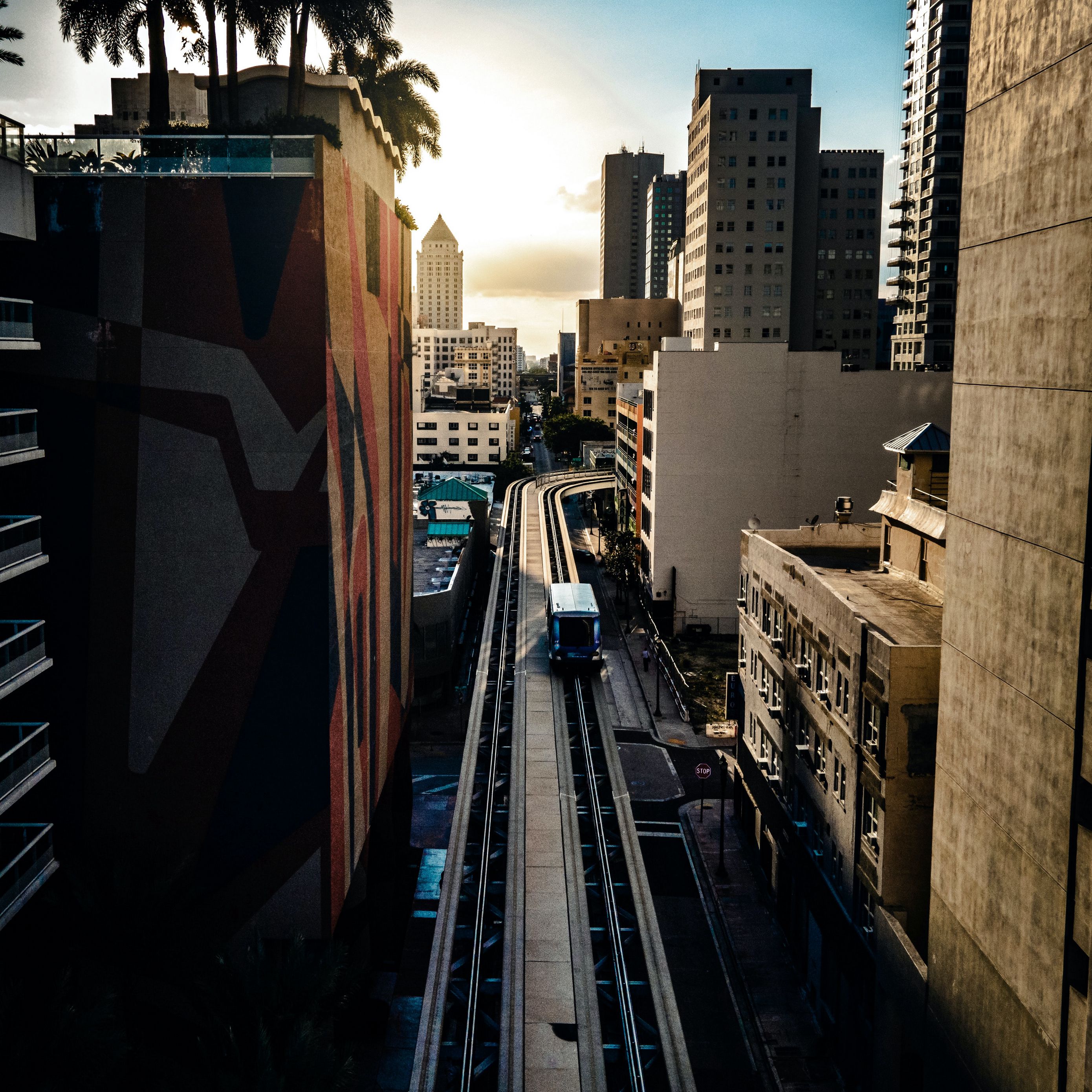 Download 2780x2780 road, buildings, facades, car, palm trees wallpaper, background ipad air, ipad air 2, ipad 3, ipad 4, ipad mini 2, ipad mini 3, ipad mini 4, ipad pro 9.7" for parallax