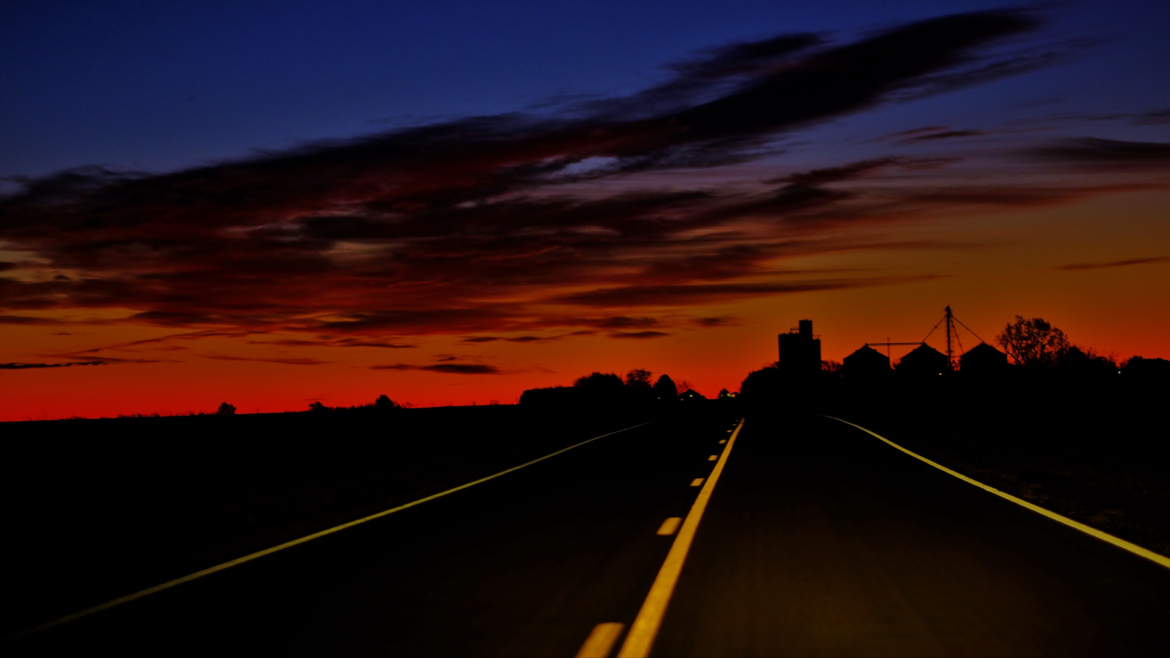Download 3840x2160 road, path, horizon, clouds, sunset wallpaper, background 4k uhd 16:9