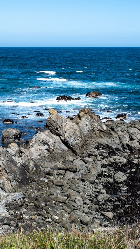 Download 480x854 rocks, coast, sea, water, nature, horizon wallpaper, background nokia lumia 630, sony ericsson xperia