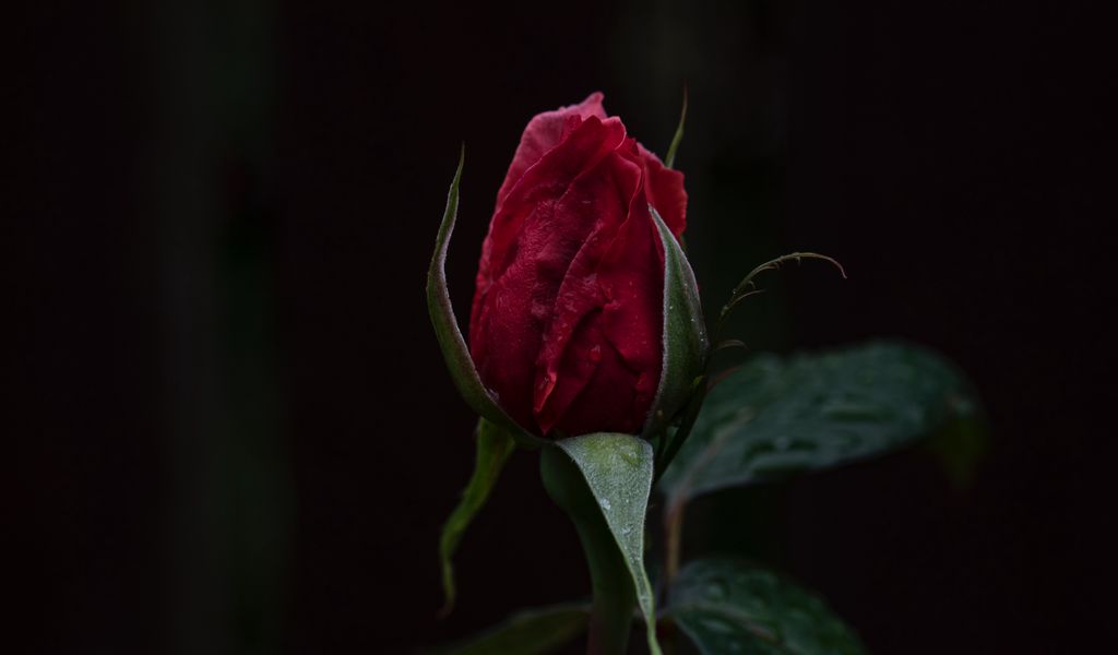 Download 1024x600 rose, bud, red, stem, dark background wallpaper, background netbook, tablet
