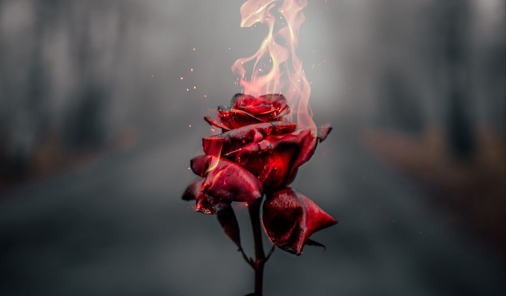 Download 1024x600 rose, flower, fire, flame, burn wallpaper, background netbook, tablet