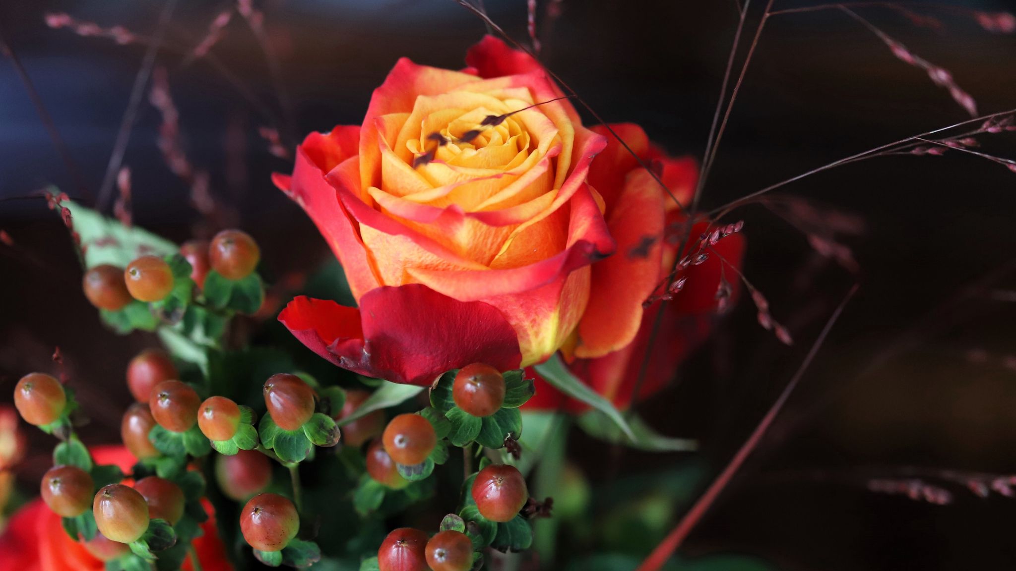 Download 2048x1152 rose, flower, petals, gradient, berries, macro wallpaper, background ultrawide monitor