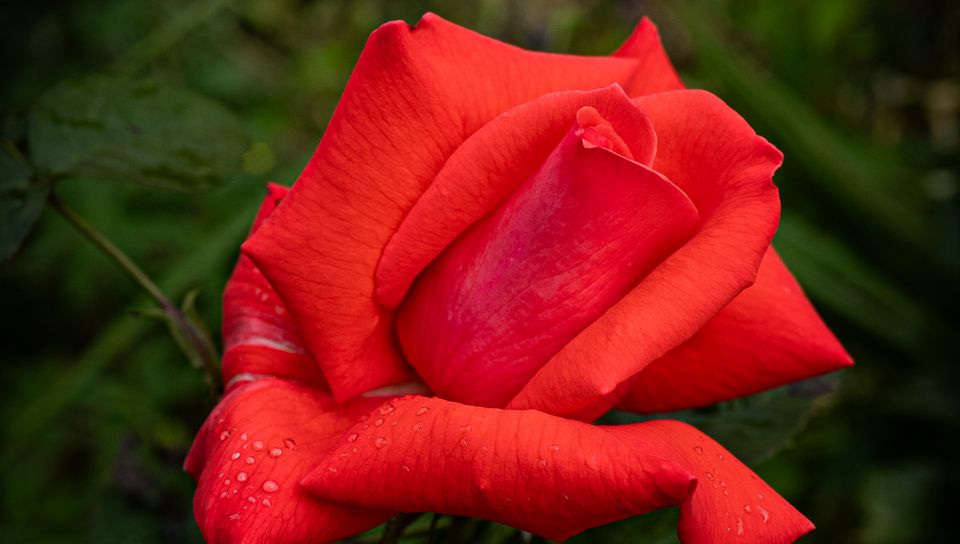 Download 960x544 rose, petals, flower, drops, dew, red, macro wallpaper, background playstation ps vita