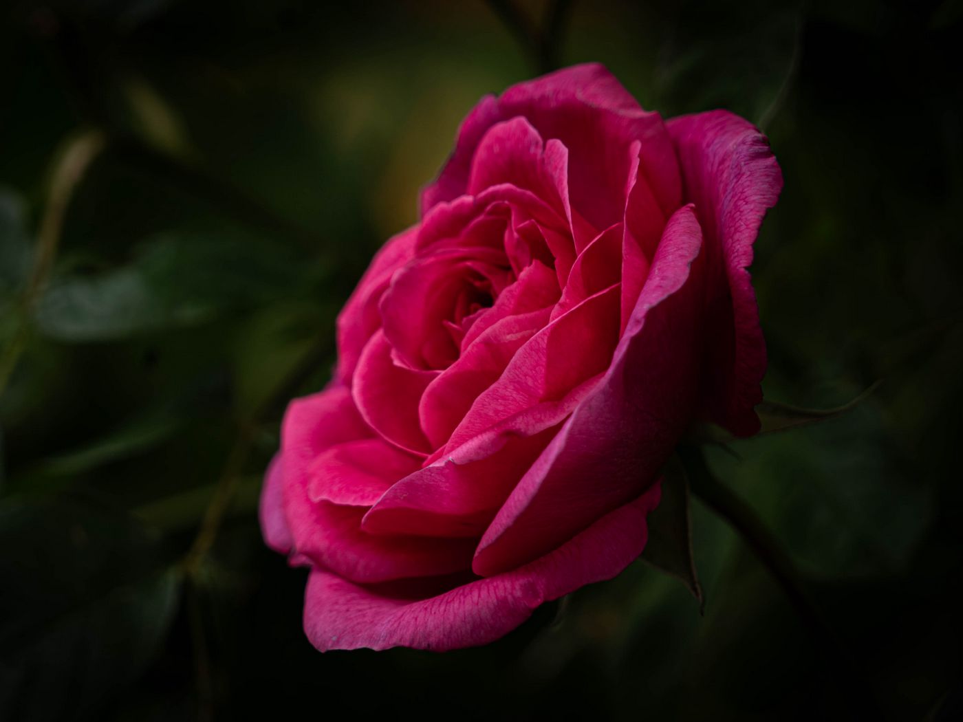 Download 1400x1050 rose, petals, stem, pink, green wallpaper, background standard 4:3