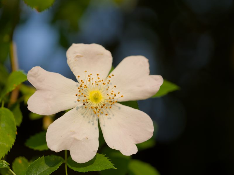 Download 800x600 rosehip, leaves, flower, petals, macro, white wallpaper, background pocket pc, pda