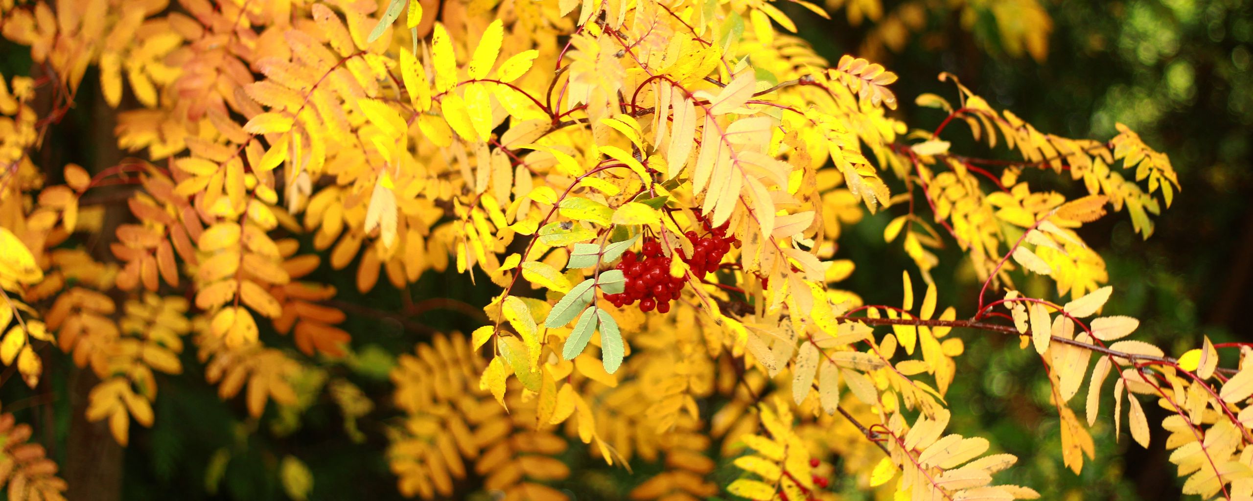 Download 2560x1024 rowan, berries, leaves, autumn, yellow, macro wallpaper, background ultrawide monitor