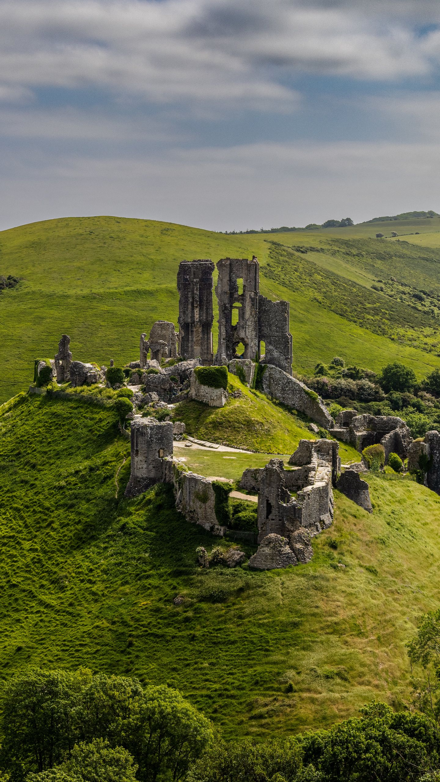 Download 1440x2560 ruins, hills, grass, nature wallpaper, background qhd samsung galaxy s6, s7, edge, note, lg g4
